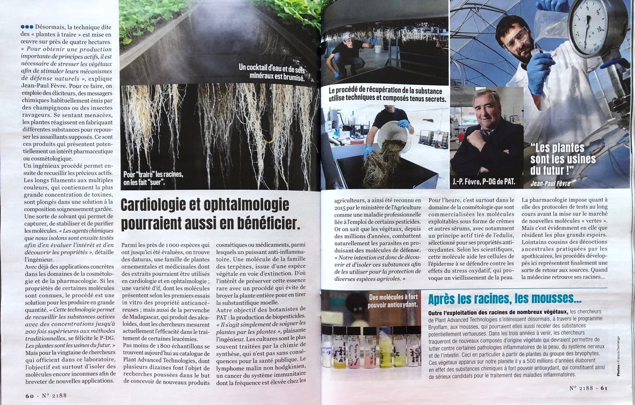 Traire” des plantes exotiques pour extraire de leurs racines des molécules rares extrêmement concentrées, c’est le concept exploité par les chercheurs de Plant Advanced Technologies. Un procédé français, unique au monde, qui intéresse déjà les géants de la cosmétique et les laboratoires pharmaceutiques.