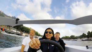 Anne Hidalgo à piloter cette voiture volante sur l’eau. Depuis le début de l’aventure, elle soutien ce projet révolutionnaire qui ne pollue pas, et qui sillonne le fleuve sans vagues.