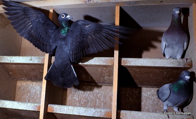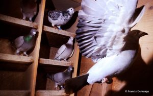 ….Aujourd’hui, la colombophilie est un sport. Un jour peut-être olympique (un concours a été organisé l’été dernier depuis Londres pendant les JO). La vitesse des « athlètes » le justifierait sans doute. Un pigeon français a parcouru 127 kilomètres par heure en 2012. Un record. Mais, en réalité, la vitesse du pigeon est certainement bien plus élevée. Comme l’explique Didier Arbonnier, qui joue au pigeon depuis 38 ans, le pigeon vole en zigzag. Il parcourt donc beaucoup plus de distance que la simple ligne droite tracée entre le départ et l’arrivée.