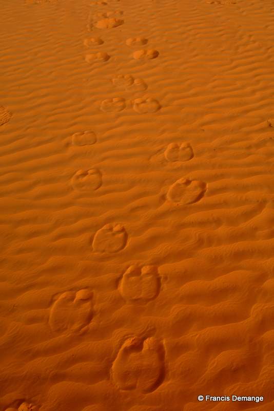 - Pas de dromadaire dans le desert de Ksar Ghilane.